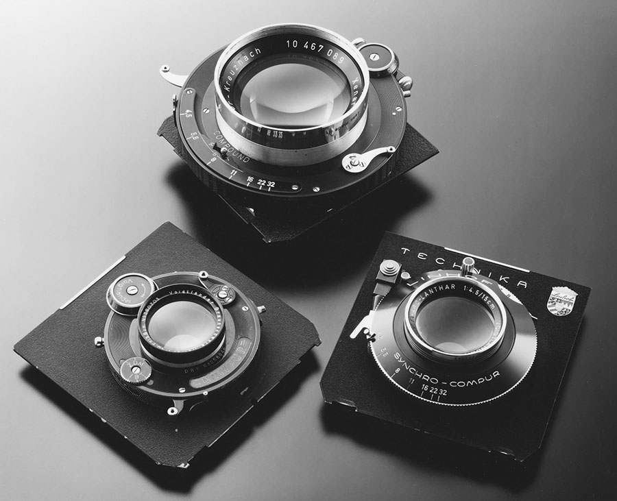 事業用はジナーX+ジナーf リンホフ スーパーテヒニカ(ファインダーや距離計は使用しない)ブロニカGS-1 ニコンF3 FE2(35ミリは使用頻度が低くデジタル化まで使用していた)
